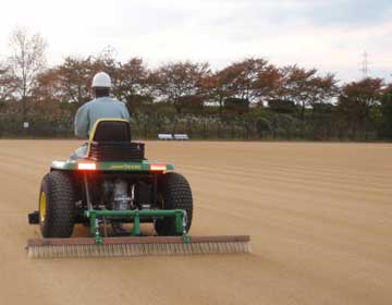 Brushing of the ground surface is performed in order to prevent balls from hitting stones and heading in irregular directions.